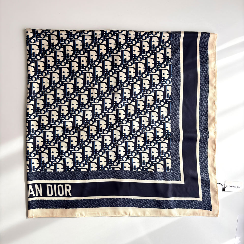 دیور، از زمان تأسیسش توسط کریستین دیور در پاریس، بهعنوان یکی از ستونهای اصلی فشن شناخته میشود. برند Dior همیشه میان اصالت و نوگرایی تعادل برقرار کرده است. طرحهای مونوگرام معروف دیور که با خطوط دقیق و رنگهای مینیمال اجرا میشوند، در این روسری نیز بهزیبایی تکرار شدهاند — ساده اما باشکوه.