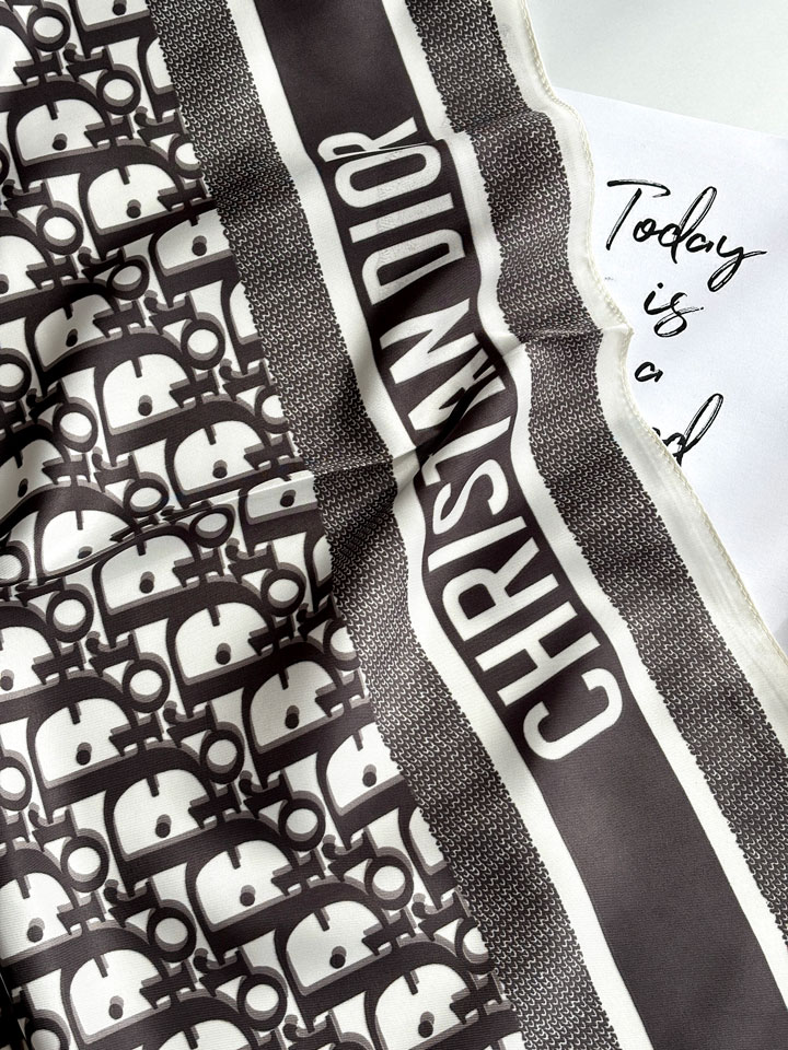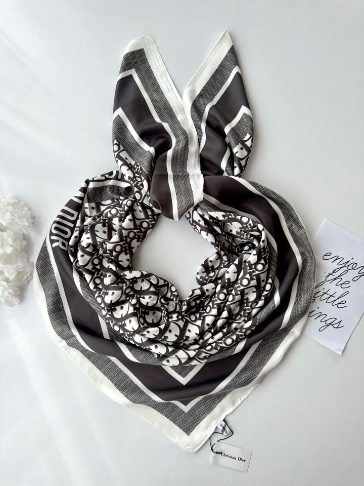 دیور همیشه به زنانگی، ظرافت و تعادل بین کلاسیک و مدرن توجه داشته. در همین راستا، طرح مونوگرام Dior روی این روسری، با الهام از الگوی معروف Oblique ساخته شده که از دههی ۱۹۶۰ تا امروز همچنان نماد اصالت و ظرافت فرانسوی است.