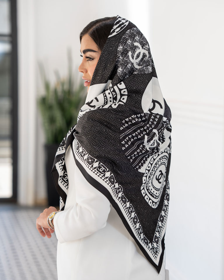 به همین دلیل، روسری ابریشم شنل سفید مشکی کد ۴ را میتوان همراه همیشگی استایل دانست.