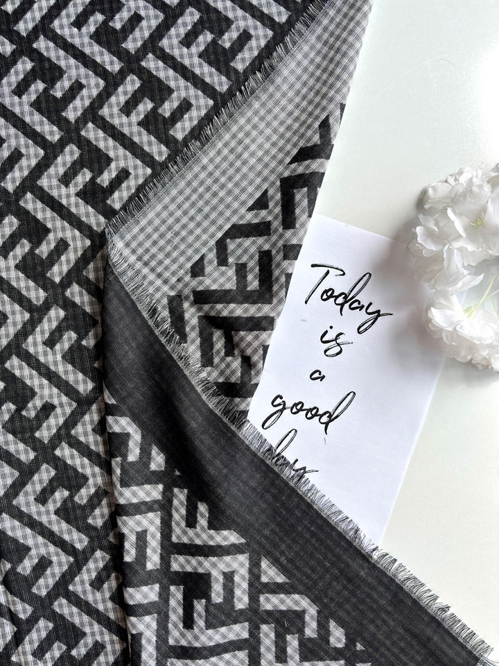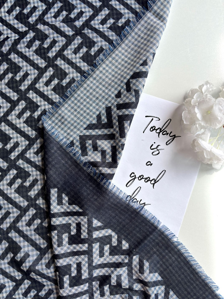 روسری ابریشم تویل(کجراه) فندی دور دوخت مشکی کرم کد 11