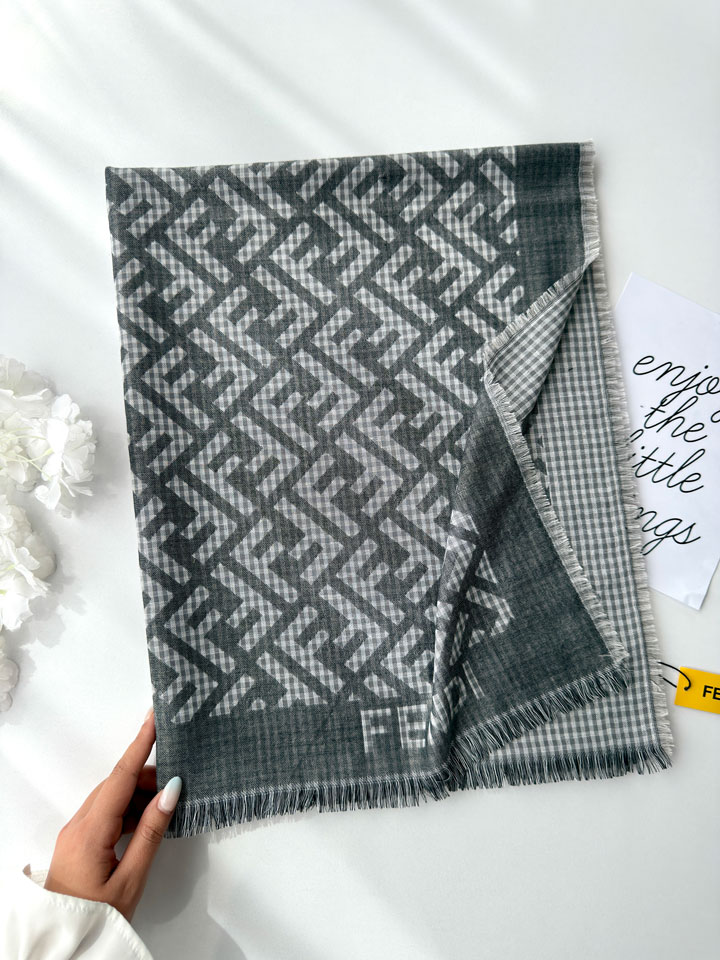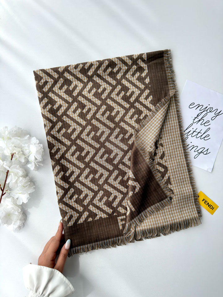 شال کشمیر ابریشم دولایه فندی دور ریشه سوزنی کد ۱۲